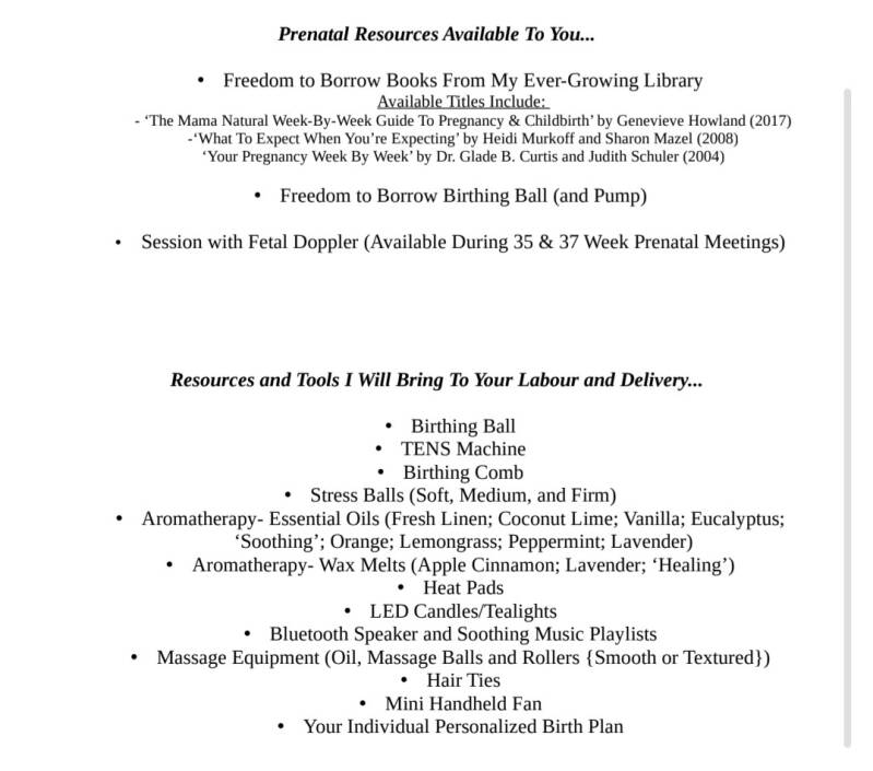 **I AM CURRENTLY OFFERING MY SERVICES (EVERYTHING YOU SEE LISTED BELOW) COMPLETELY FREE-OF-CHARGE WHILE I AM COMPLETING MY CERTIFICATION. MY INTENTION IS TO GAIN MEANINGFUL HANDS-ON EXPERIENCE THAT WILL HELP CONTRIBUTE TO MY KNOWLEDGE, BUILD MY RESUME, AND MAKE ME A BETTER DOULA. IF YOU ARE INTERESTED, PLEASE REACH OUT. I HAVE LIMITED AVAILABILITY AND SLOTS ARE FILLING UP FAST!!**